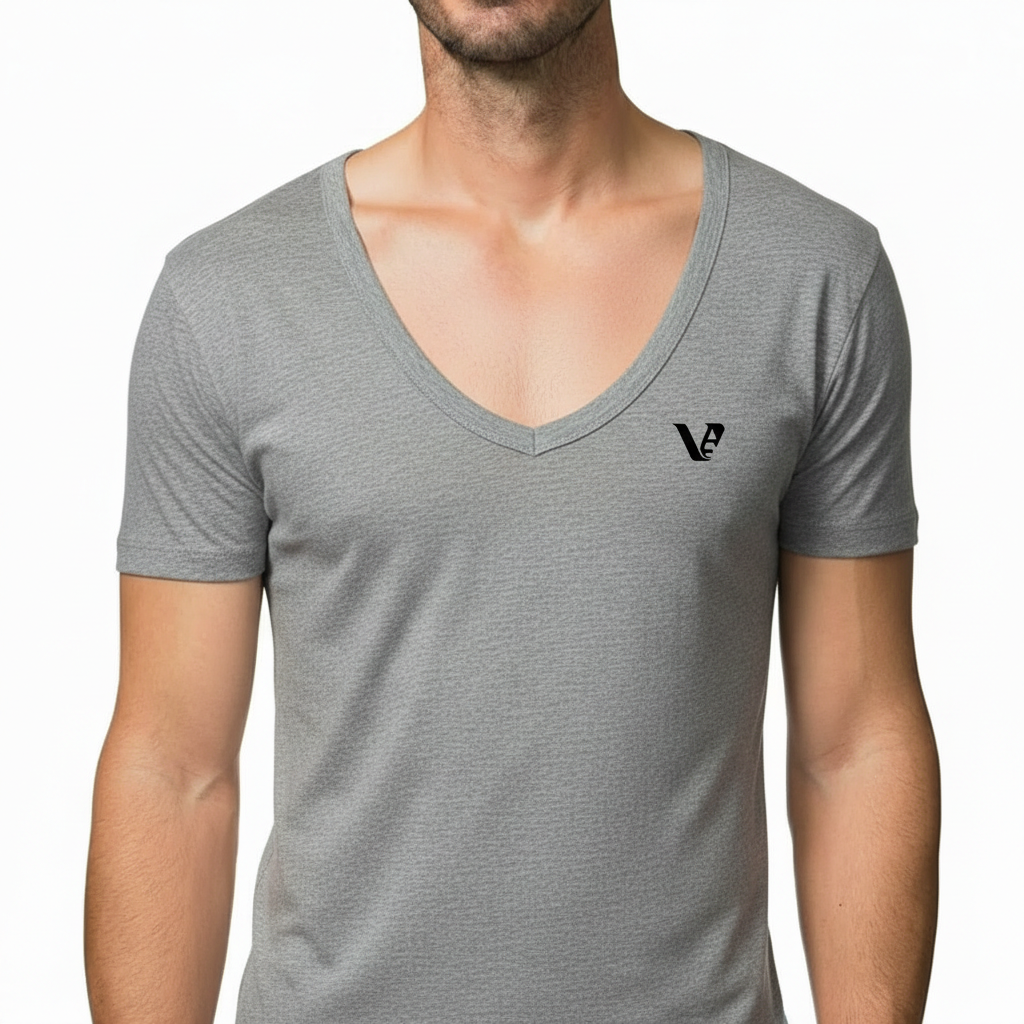 Design: Deep V-neck with a minimalist embroidered black V-logo on the left chest.