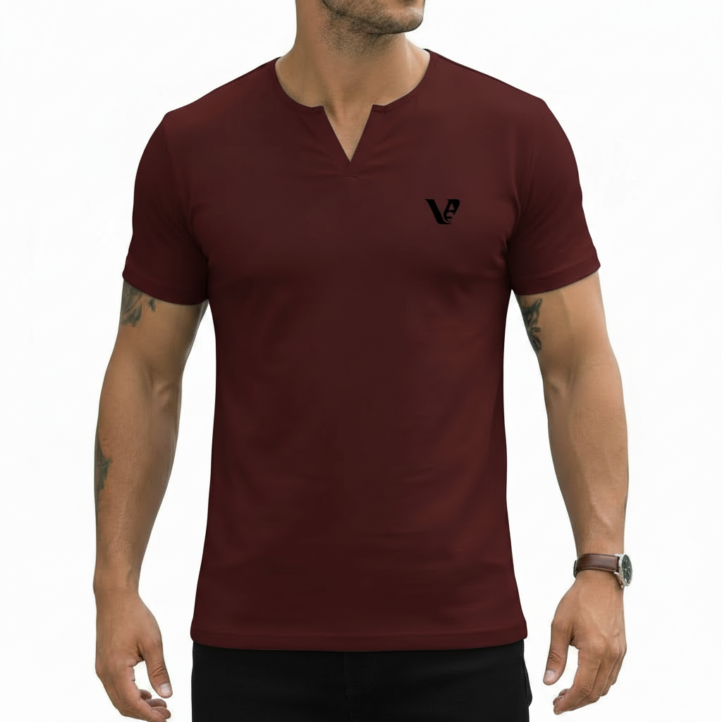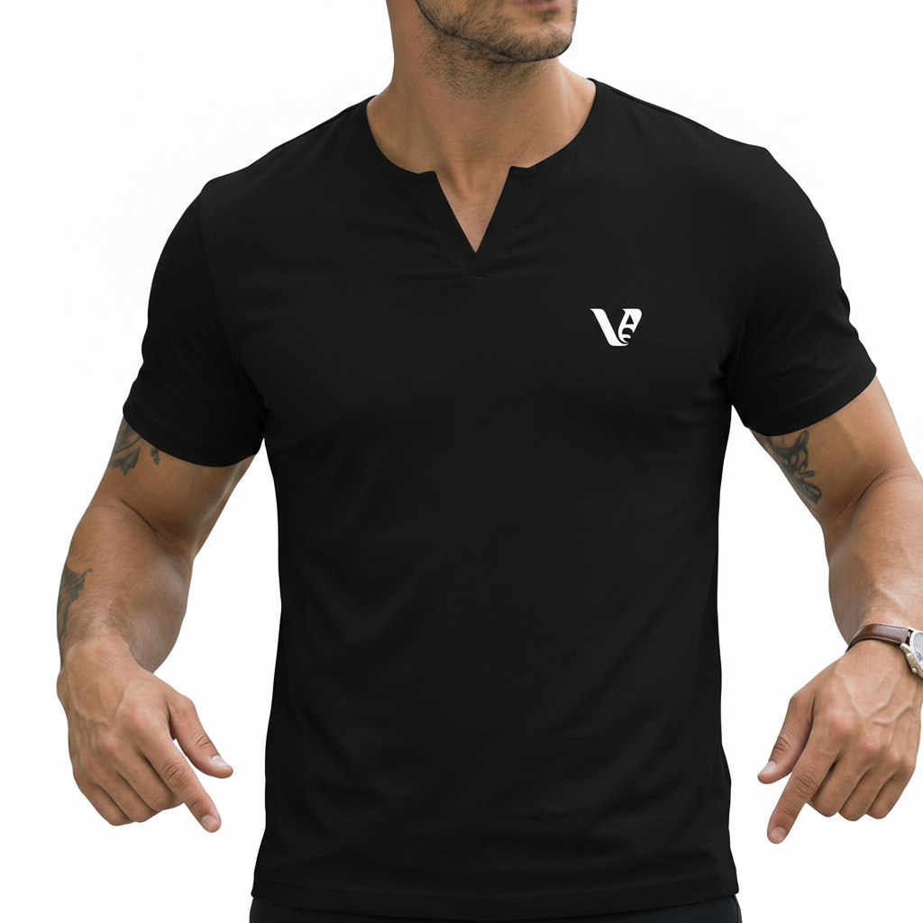 Neckline: A precision-cut Split V-Neck (Henley Style) that adds a rugged, masculine touch and provides better ventilation.