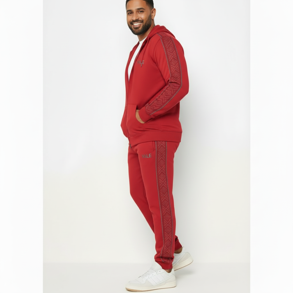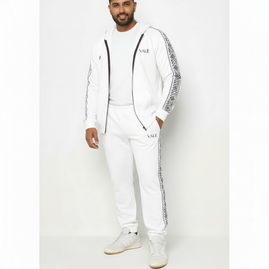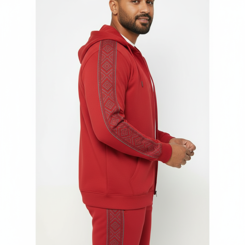 Embossed Side-Panel Accents: Stylish geometric patterns run along the sleeves and legs, providing a modern, textured look that elevates the classic tracksuit.