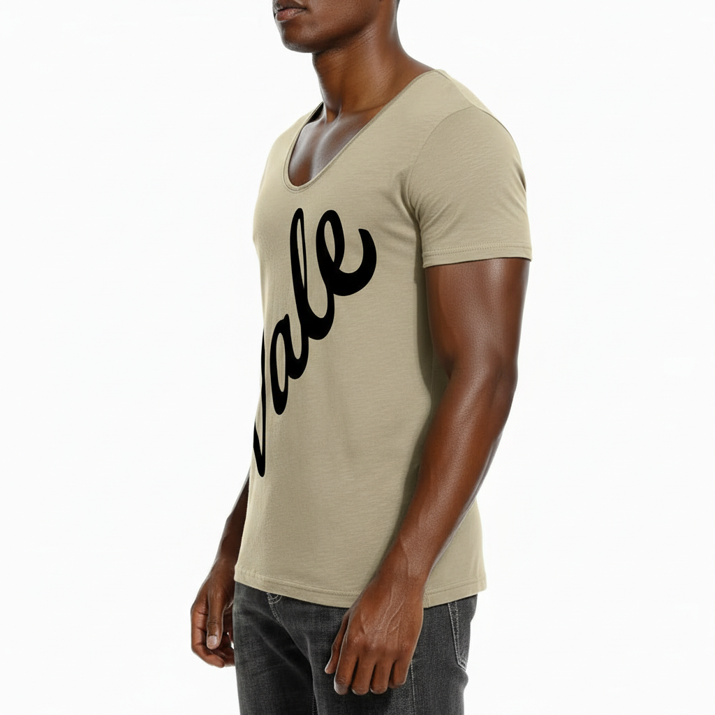 Script Men’s Scoop V-Neck Slim Fit T-Shirt