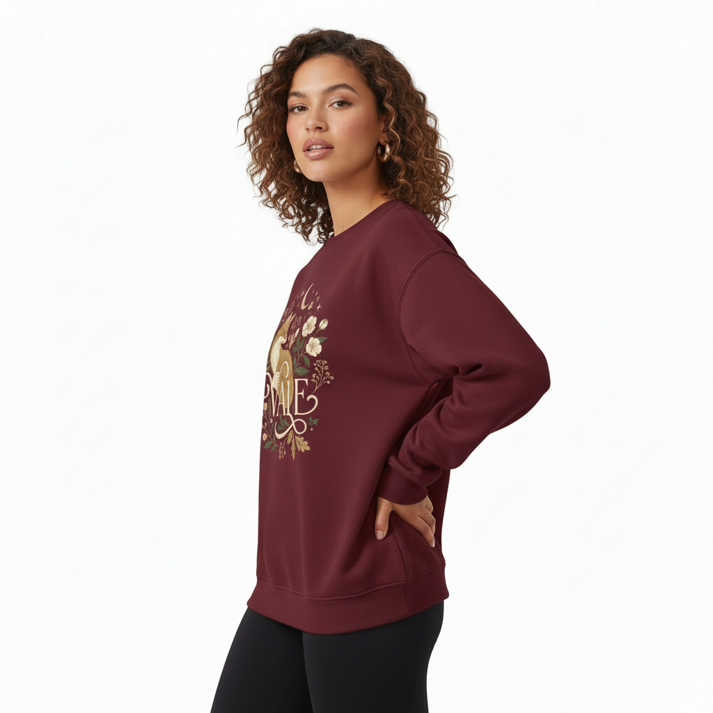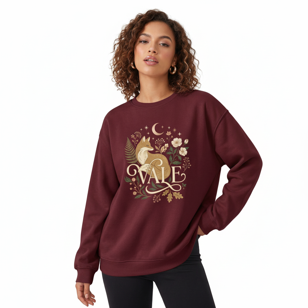 Design: Features an intricate “VALE” brand graphic with a mystical fox, crescent moon, and autumnal floral accents for a premium look.