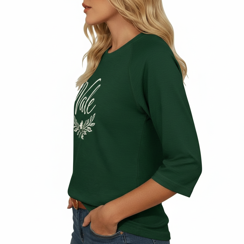 Design: Features an elegant, minimalist “Vale” script accompanied by a delicate floral wreath motif in a contrasting cream print.