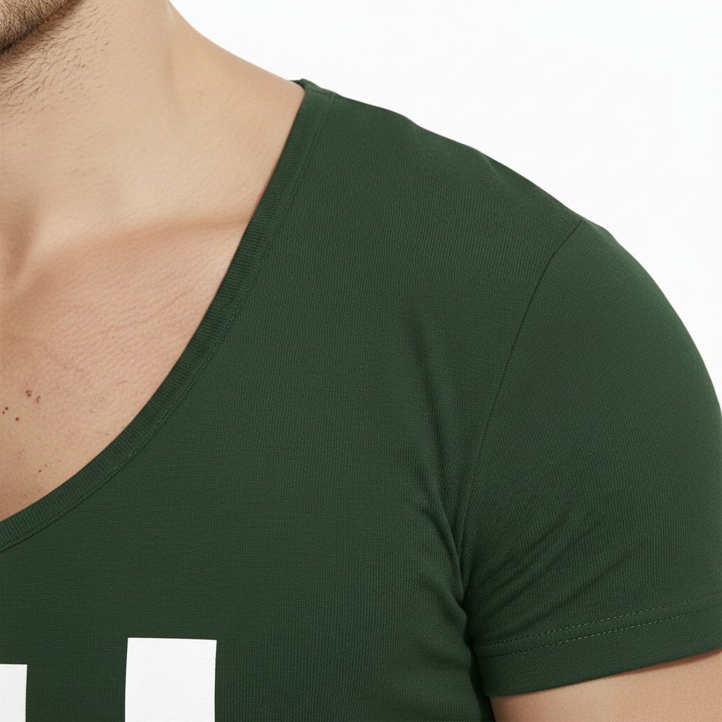 Design: Features a distinctive Deep V-Neck (Scoop style) for a modern, edgy, and masculine look.