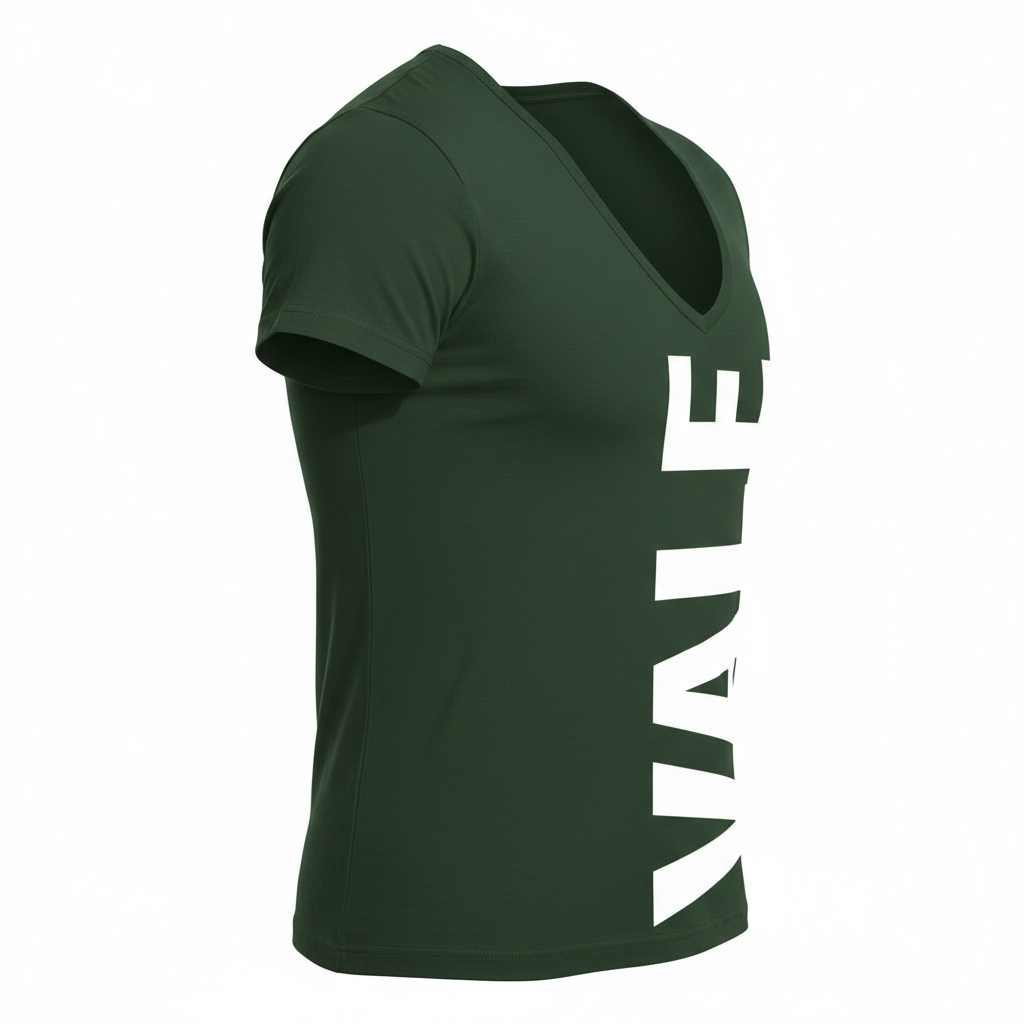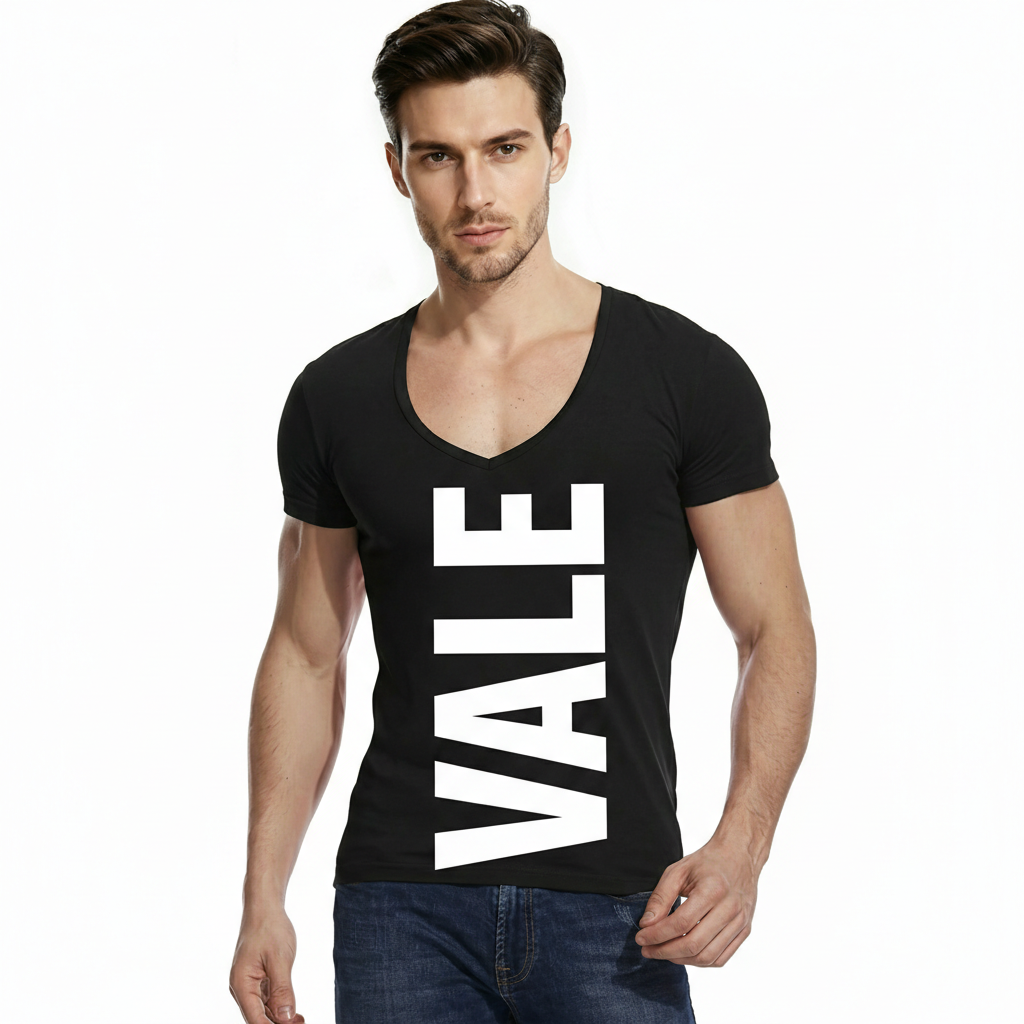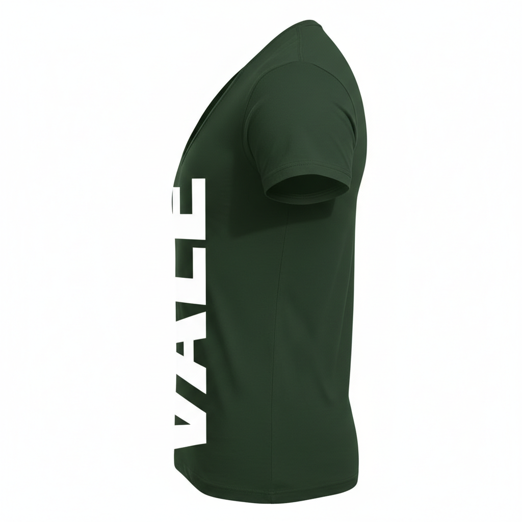 Graphic: Bold, vertical “VALE” typography printed in high-quality white ink for a striking contrast.