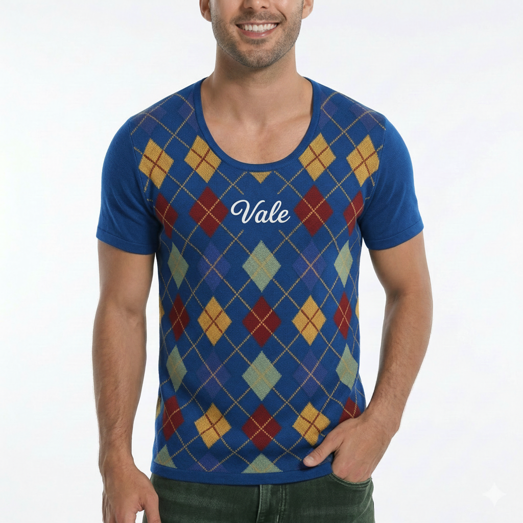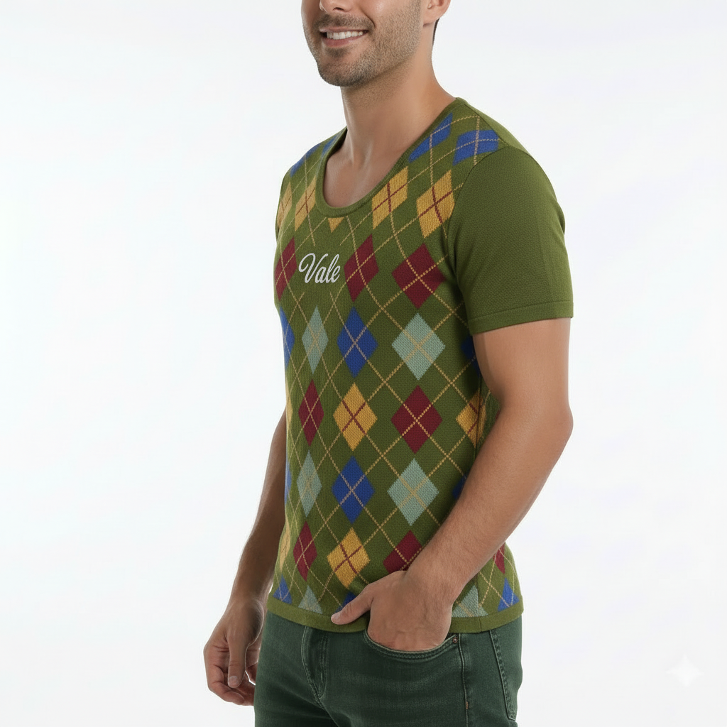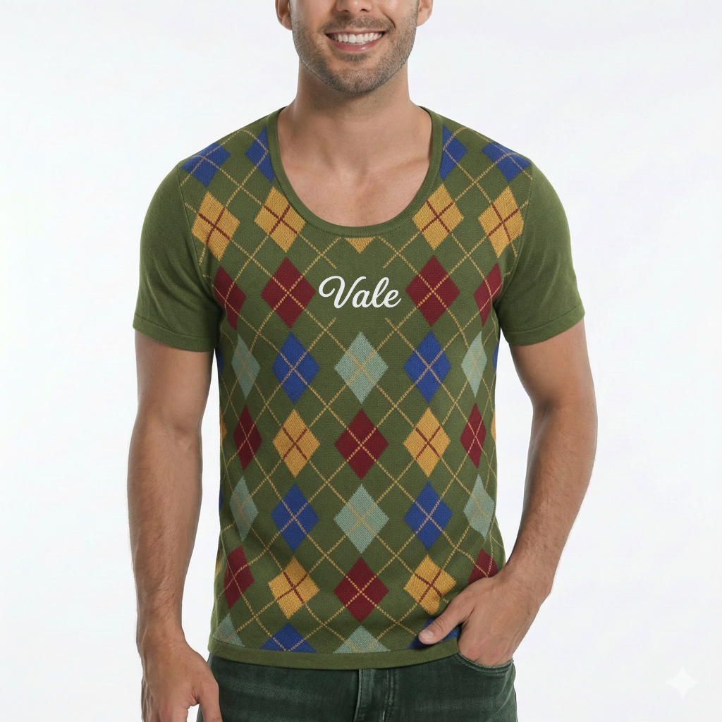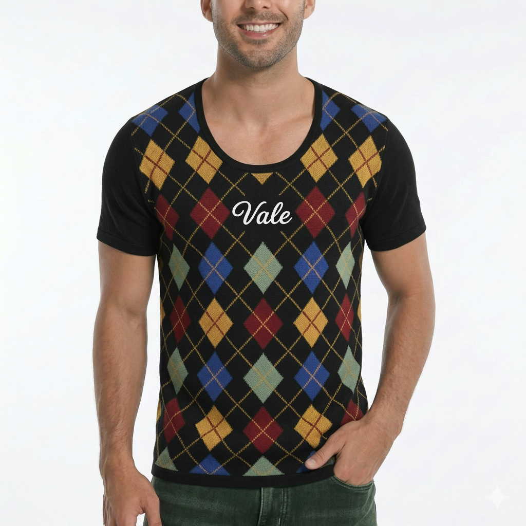 Vale Men’s Premium Argyle Print Cotton T-Shirt