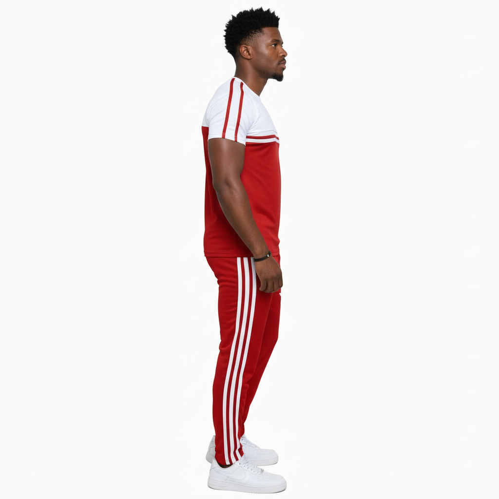 Complete Set: Includes a short-sleeve crew neck t-shirt and matching track pants with an elasticated waistband.